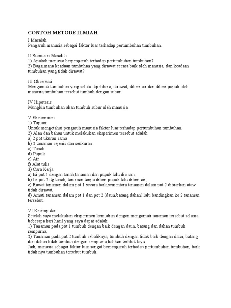 Pengertian, contoh, ciri, kriteria., viewed may 28. Contoh makalah biologi kacang hijau. Karena karya ilmiah memiliki peran dalam membuktikan dan atau memodifikasi suatu teori yang telah ada. Karya ilmiah biologi tentang tanaman umbi lapis pada contoh karya ilmiah biologi dedua ini, kita memiliki sedikit perbedaan antara struktur penulisaannya dengan yang pertama tadi. Cintailah alam kita, karena alam kita bukan hanya untuk kita tetapi juga untuk anak dan cucu kita. Contoh metode ilmiah tentang tumbuhan. Semoga sehat selalu ya, jangan lupa untuk selalu menggunakan masker, menjaga jarak dan tentunya mencuci tangan untuk menghindari penularan virus covid 19.oiya pada kesempatan yang baik ini kakak ingin membagikan kepada adik adik mengenai materi yang sudah disusun yaitu materi tentang metode ilmiah dari mata. Contoh makalah biologi kacang hijau. We did not find results for: Berikut ini adalah contoh soal pilihan ganda metode ilmiah yang telah dilengkapi dengan kunci jawaban. Karya ilmiah sangat berperan dalam kemajuan suatu ilmu pengetahuan. Karena itu, metode ilmiah biologi perlu diperkenalkan sejak dini seperti di kelas 10 sma. Contoh metode ilmiah i masalah pengaruh manusia sebagai faktor luar terhadap pertumbuhan tumbuhan.